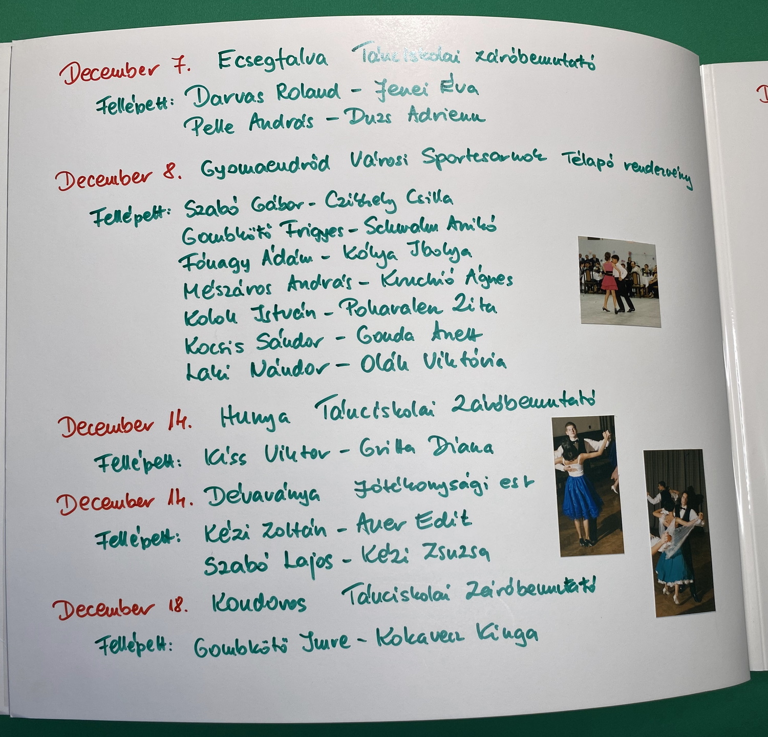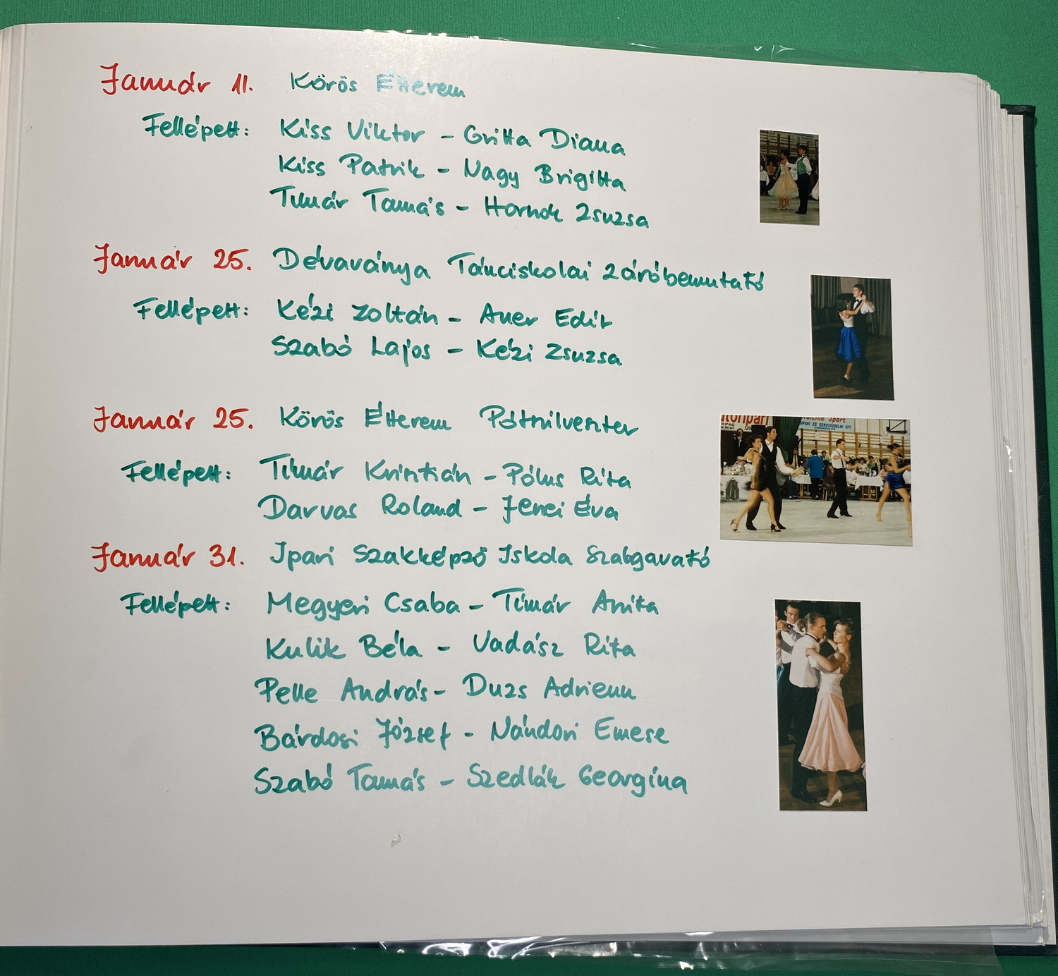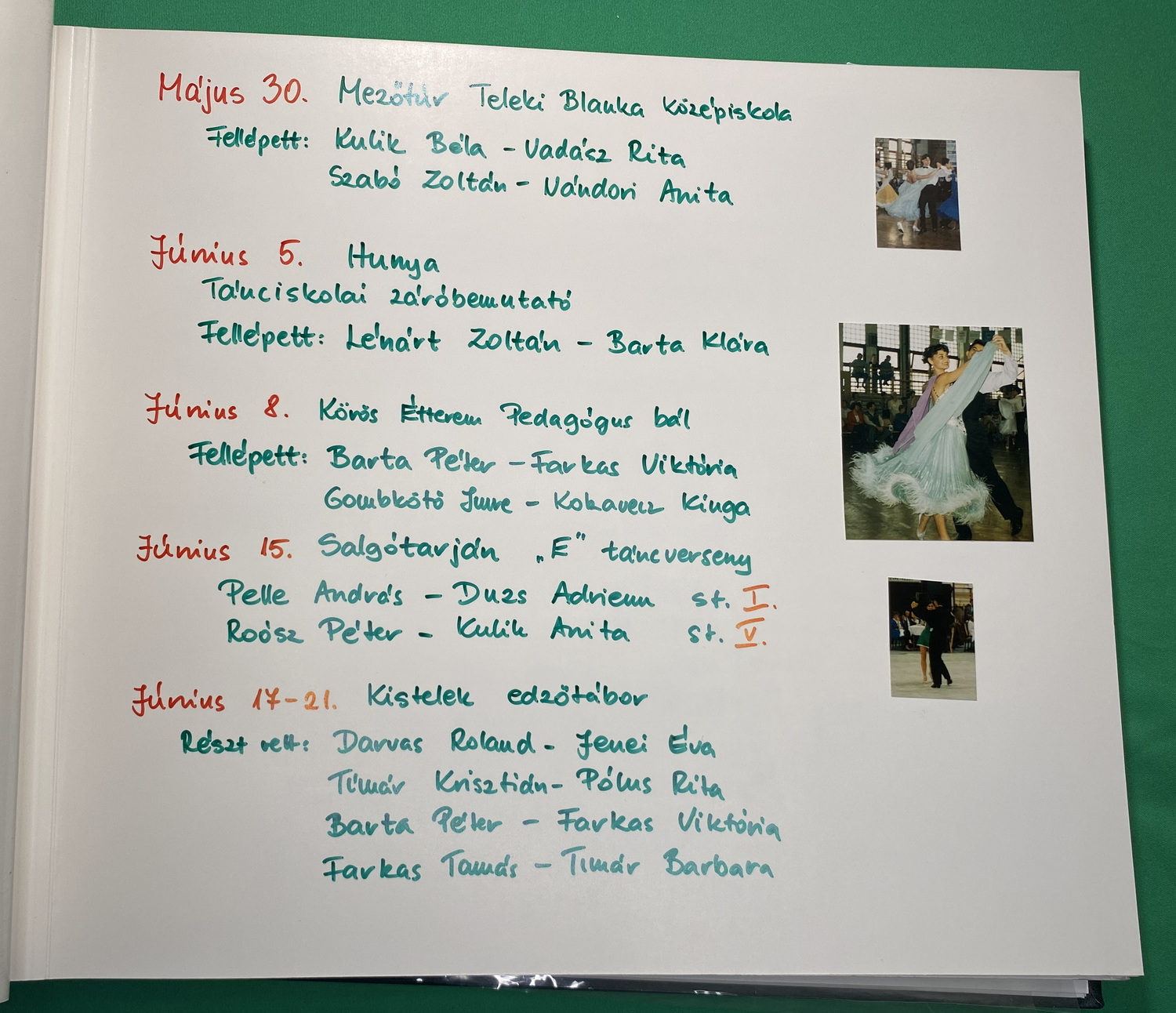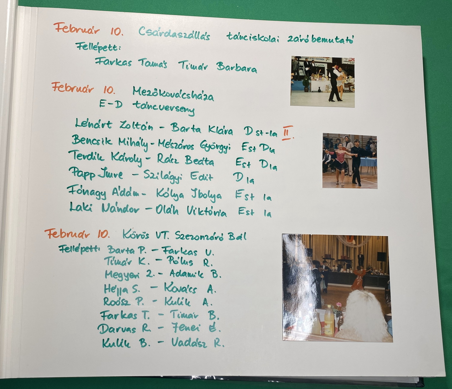 Páros és party táncok: Blues, Slowfox, Angol keringő, Cha-cha-cha, Polka, Disco