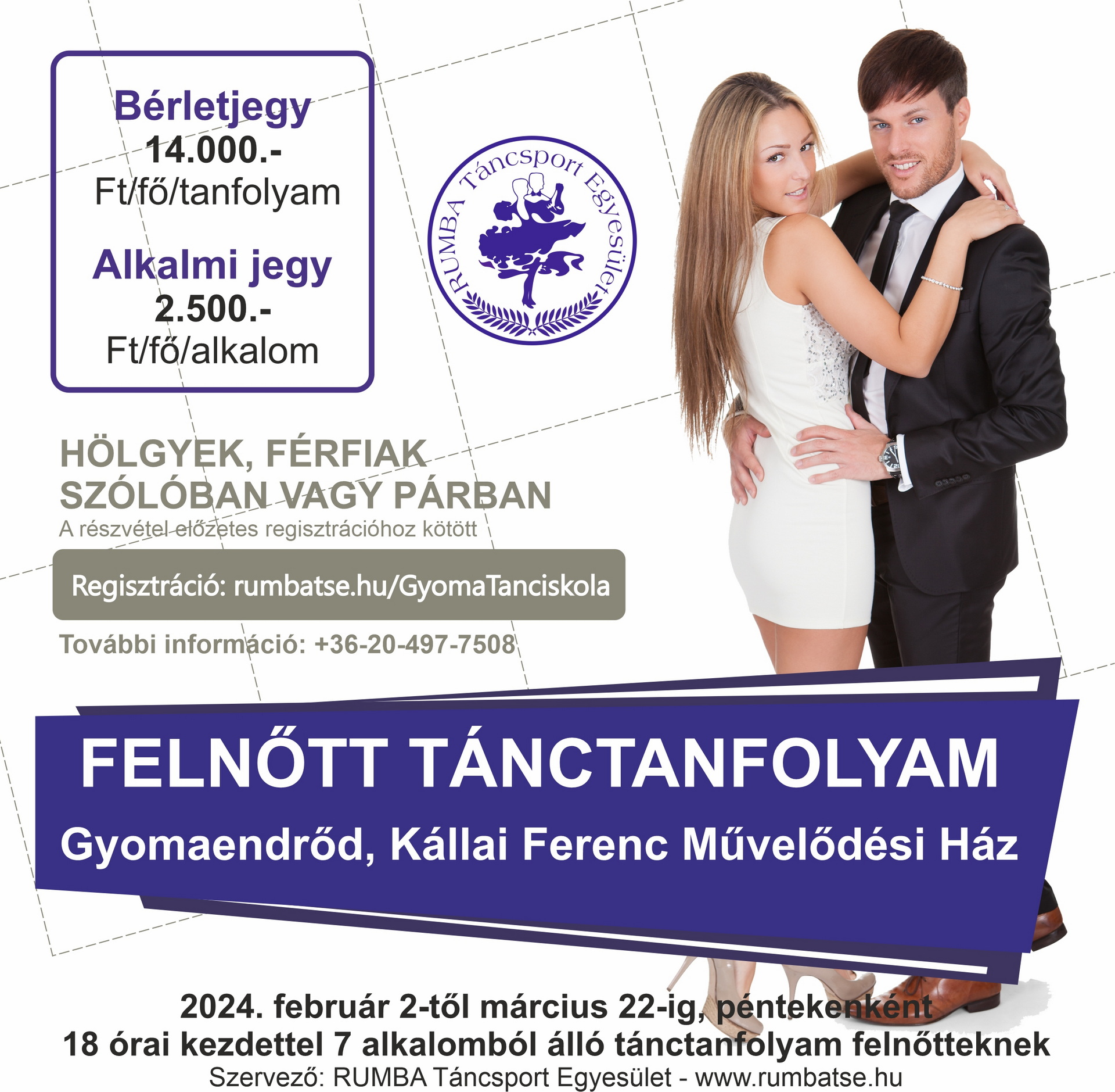 Regisztráció és jegyelővétel: rumbatse.hu/GyomaTanciskola
