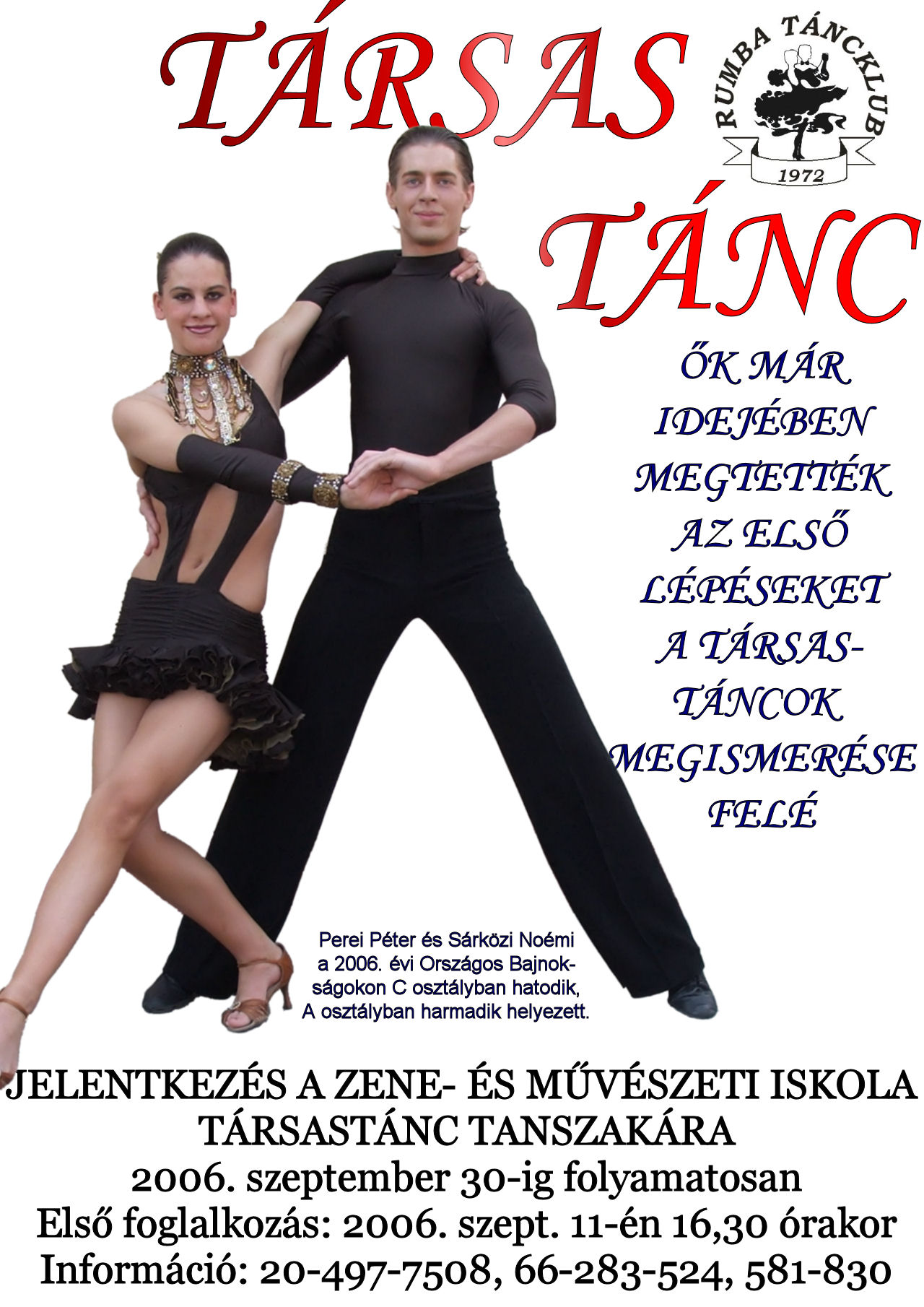 A kezd? tánciskolába beiratkozás a Katona József Művelődési Ház (5500 Gyomaendrőd, Kossuth út 9.) emeleti tánctermében szeptember 11-ét?l szeptember 30-ig 16,30 órakor a foglalkozások kezdetén személyesen, vagy a fenti elérhetőségek valamelyikén. Pótbeiratkozás: október 2, 4.
